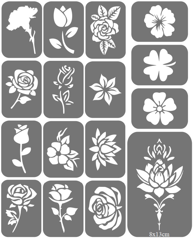 Zestaw składa się z 16 szablonów w rozmiarze 5x7cm*. Sprzedawane zestawy są precyzyjnie pocięte na pojedyncze szablony, co ułatwia ich użycie.